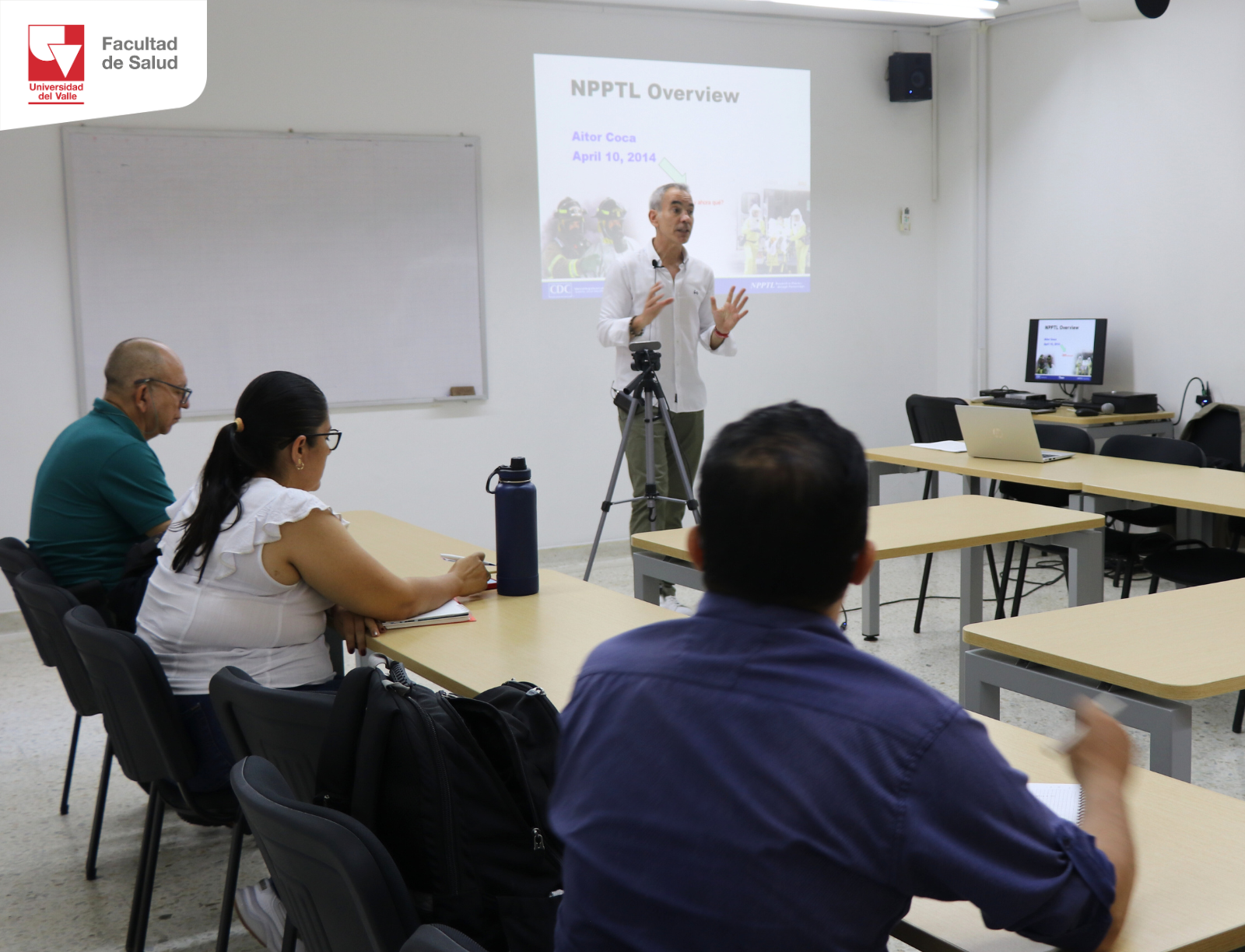 Durante la visita, se contó con la participación del Dr. Aitor Coca, PhD en fisiología del ejercicio de la Universidad de Minnesota (EE.UU.), actual Vicerrector de Investigaciones de la Universidad de Vitoria-Gasteiz (EUNEIZ), España. El profesor Coca ha liderado proyectos financiados por la NASA y por el gobierno estadounidense relacionados con la prevención del estrés térmico laboral, desarrollando políticas y documentación técnica de relevancia internacional. En su paso por la Universidad del Valle, dictó una conferencia sobre fisiología del trabajo y ofreció asesorías académicas a estudiantes de maestría y doctorado.