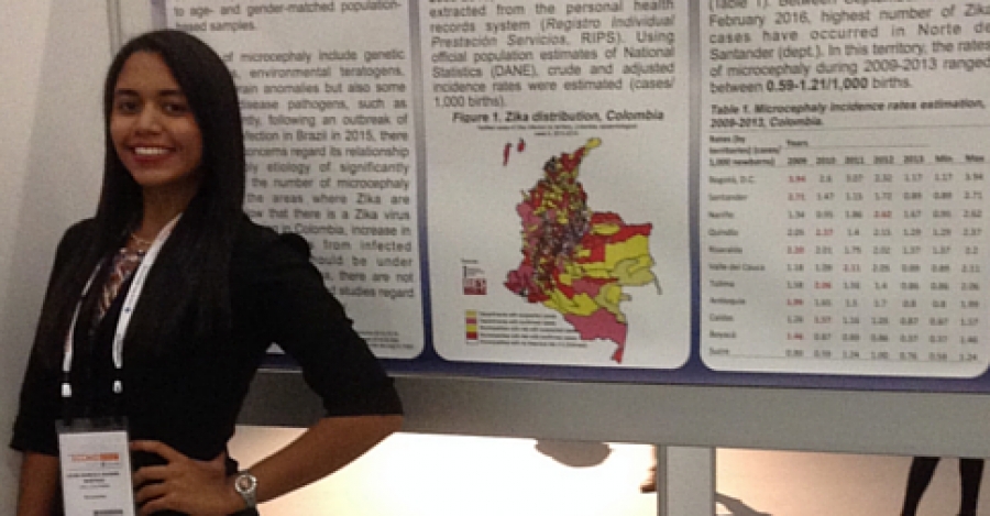 El trabajo presentado por la estudiante en la modalidad de poster fue: “Epidemiology of microcephaly in Colombia 2009-2013: implications in the Surveillance of Zika". El proyecto, que fue adelantado por un grupo de investigación de la Universidad Tecnológica de Pereira, UTP, tenía como objetivo establecer una línea base por departamento que permitiera conocer la incidencia de microcefalia en Colombia durante el periodo 2009-2013; los datos se recogieron mediante la revisión de literatura y de Registros Individuales de Prestación de Servicios en Salud, RIPS.