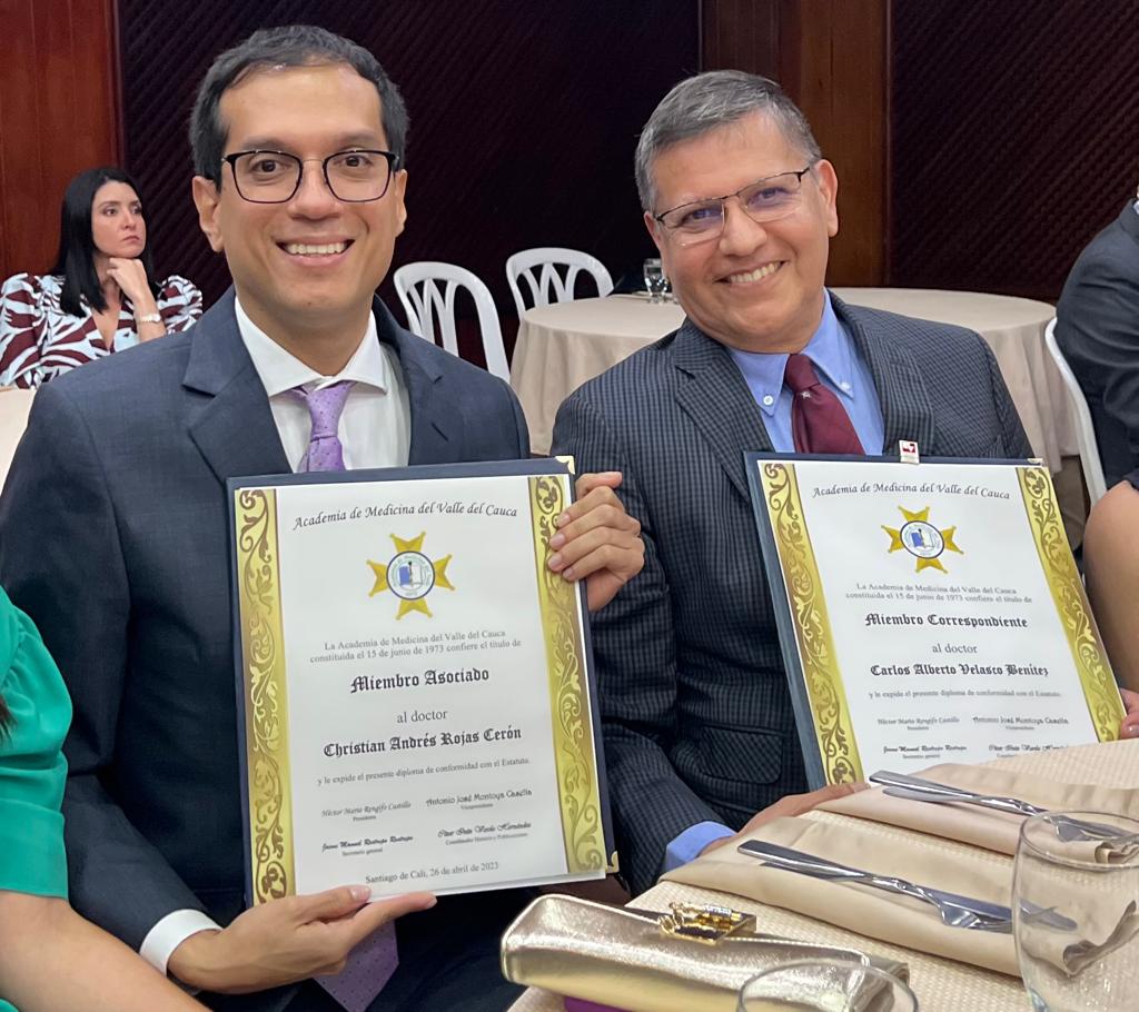 Del mismo modo, fue distinguido con el Título de Miembro de Número de la Academia del Valle el doctor José Mauricio Ocampo (Coordinador del Programa de Geriatría), a quien además le fue impuesto Escudo de la Academia Nacional de Medicina. Así mismo recibieron el Título de Miembro Correspondiente de la Academia del Valle la doctora Melba Franky viuda de Borrero (docente jubilada del Departamento de Pediatría) y Carlos Alberto Velasco (profesor del Departamento de Pediatría), y Título de Miembro Asociado de la Academia del Valle del Cauca el doctor Christian Andrés Rojas (profesor del Departamento de Pediatría).