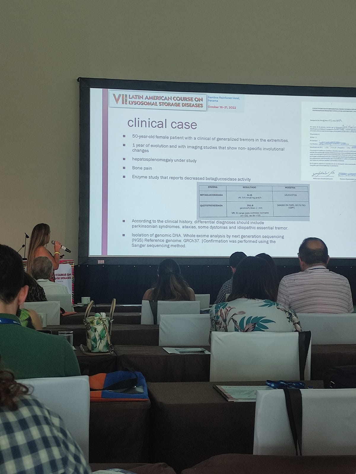 Sobre esta última, la estudiante tuvo la oportunidad de participar presentando un caso clínico de discusión asociado a su investigación doctoral, titulado “VARIANTS IN GBA, AND MAPT INFLUENCE PARKINSON DISEASE RISK AND AGE AT ONSET IN A COLOMBIAN PATIENT”; las discusiones en torno a la Enfermedad de Gaucher estuvieron dirigidas por reconocidos científicos internacionales tales como el Dr. Gregory Pastores (University College Dublin, Irlanda), la Dra. Paula Rozenfeld (Universidad Nacional de la Plata – CONICET, Argentina) y la Dra. Francyne Kubaski, (Biochemical Genetics Laboratory at the Greenwood Genetic Center, USA).