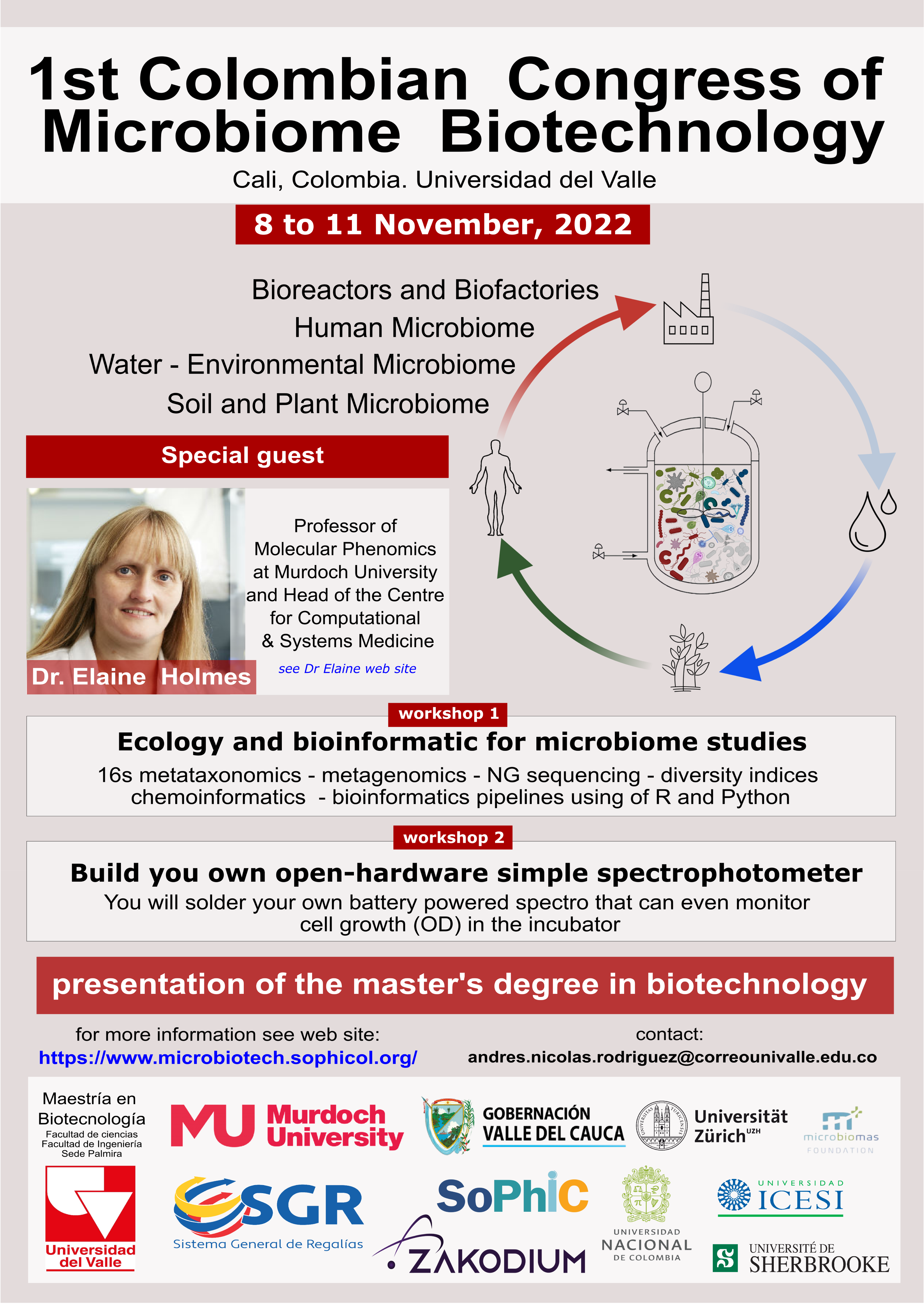 La Maestría en Biotecnología tiene el gusto de invitarlos al 1er Congreso de Biotecnología del Microbioma, el cual contará con la participación especial de la Dra. Elaine Holmes, experta en metabolómica humana.