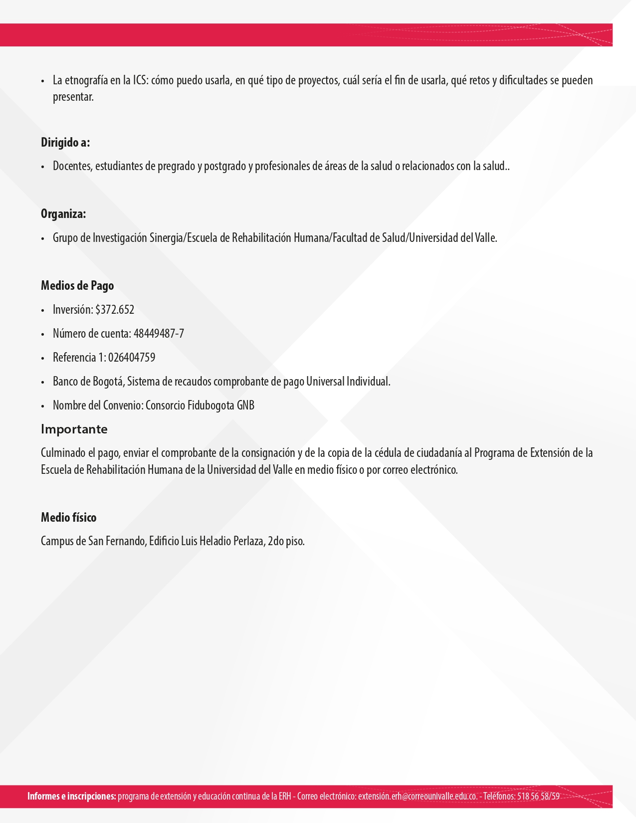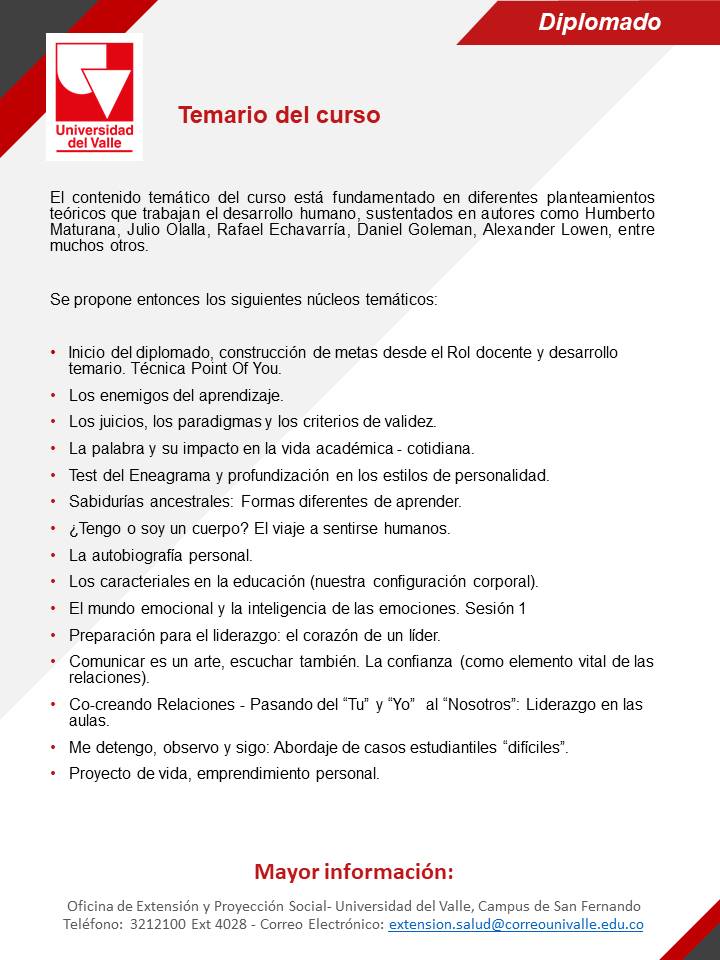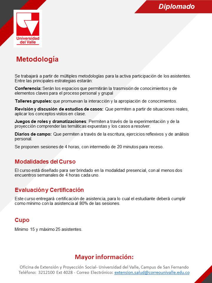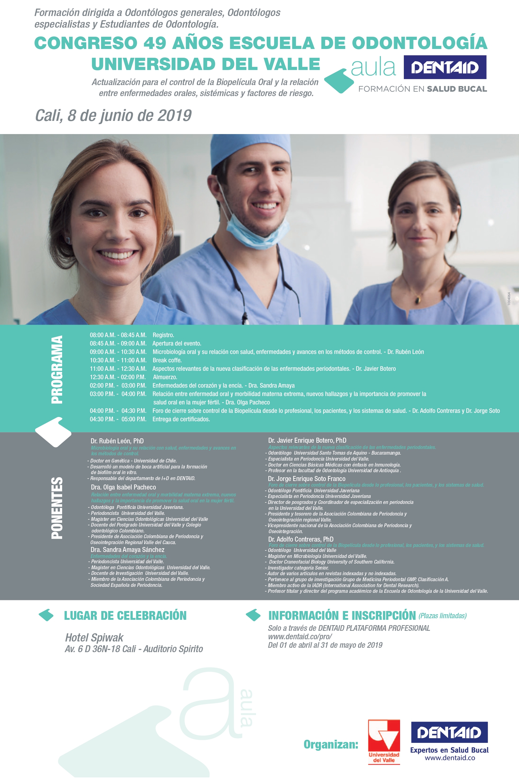 Lugar: Escuela de Odontología de la Universidad del Valle (Campus San Fernando)