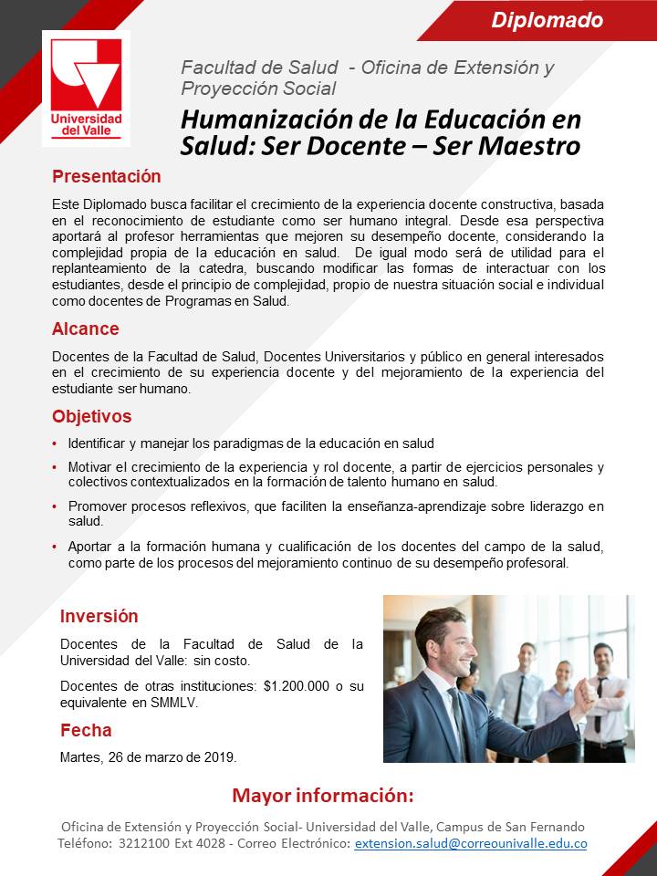 La Facultad de Salud de la Universidad del Valle invita a los interesados en cursar sus estudios de posgrado en el área de salud, a inscribirse en los programas de Doctorado en Salud y Doctorado en Ciencias Biomedicas.