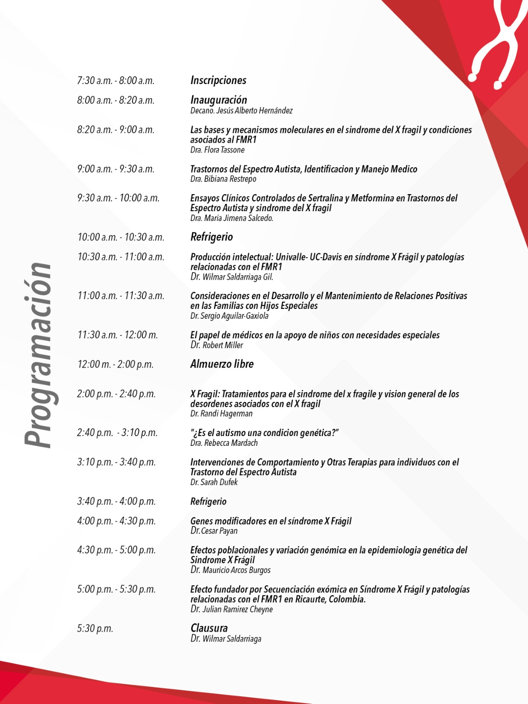 En la jornada se contó con la participación de dos conferencistas, reconocidos a nivel internacional por sus conocimientos en prospectiva, calidad y salud oral: el Dr Javier Medina Vásquez, docente de la Universidad del Valle, quien expuso sobre el futuro de la investigación, la innovación y el desarrollo tecnológico en salud y odontología en Colombia, mirados en una apuesta de país desde la academia. Por otra parte, el Dr. Jairo H. Ternera Pulido, expuso acerca de las oportunidades para la inserción laboral de los odontólogos en el marco de la salud en Colombia.