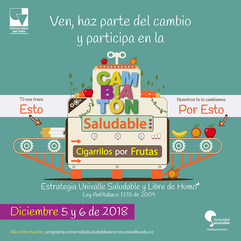 Así que, desde la sensibilización, la creatividad y lo lúdico-recreativo, el equipo de Universidad Saludable estará realizando los siguientes actos simbólicos, a los que invita a toda la comunidad universitaria (estudiantes, funcionarios, administrativos, docentes, personal de servicios varios y vigilancia) a participar e involucrarse en estos #VientosdeCambioenUnivalle.