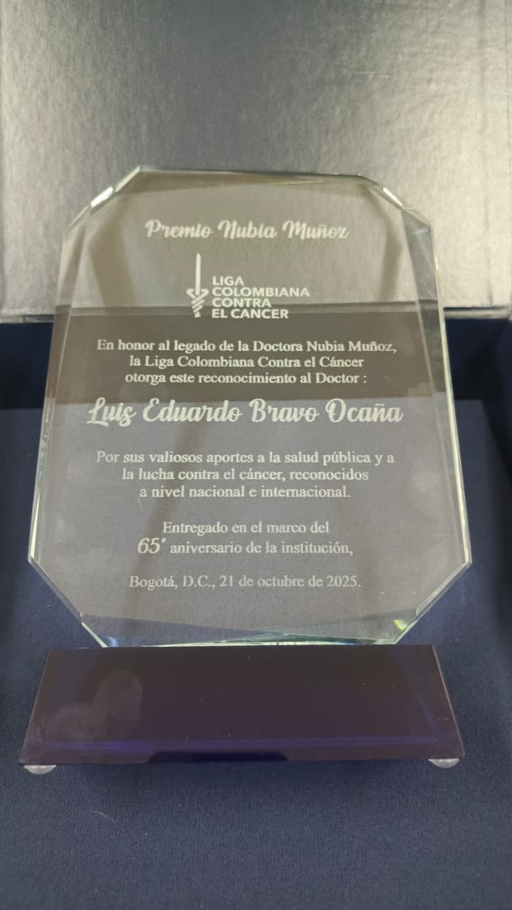 “Recibo con sincero agradecimiento y profunda emoción esta distinción... que honra la memoria y el legado de la doctora Nubia Muñoz, pionera y referente mundial en la epidemiología del cáncer, y que reconoce el trabajo constante del Registro Poblacional de Cáncer de Cali”, expresó el doctor Bravo en su mensaje.